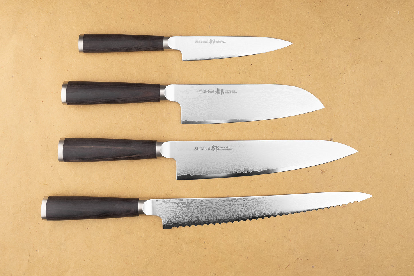 The Shikisai Miyako is an elegant choice for both chefs and home cooks. AUS-8 stainless steel is low maintenance, keeps a great edge, and is more rugged than most Japanese steels. The 33-layer damascus finish makes for a stunning piece, finished with a weighty, confident pakkawood handle. Perfection!