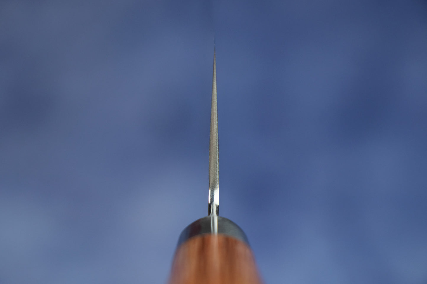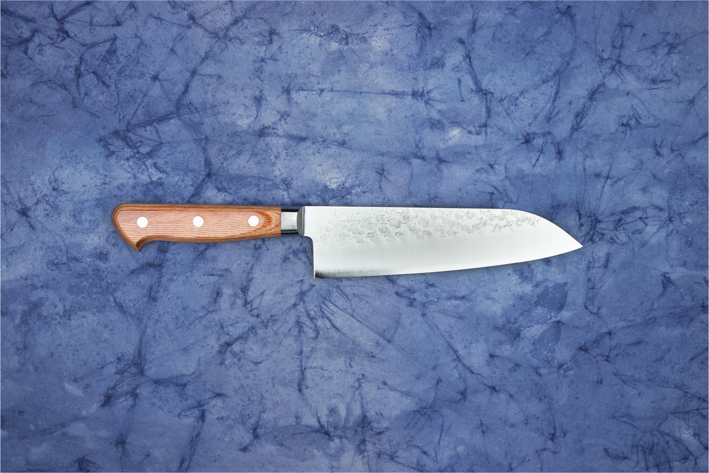 Perfect for starting a Japanese knife collection, this multipurpose knife ticks all of the boxes. The hammer marked blade slides through food effortlessly and gives it a great look. Takamura-san is not only a karaoke king (especially 1980’s hair metal) but one of the top blacksmiths in his generation.
