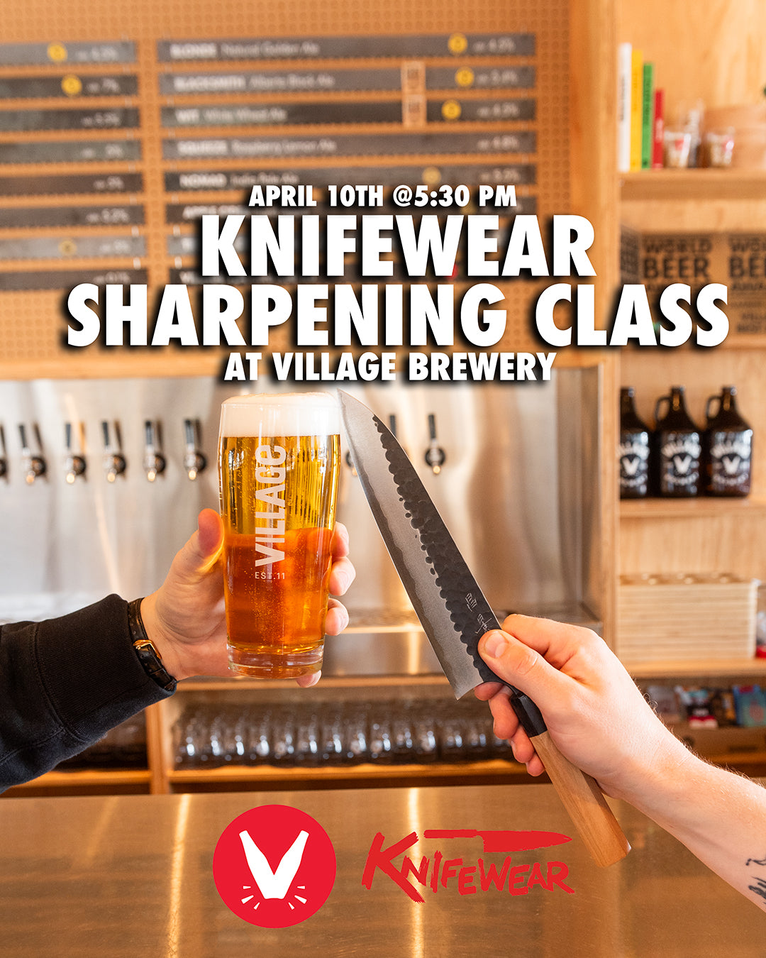 Village Brewery x Knifewear Knife Sharpening Class, April 10, 5:30-7:30