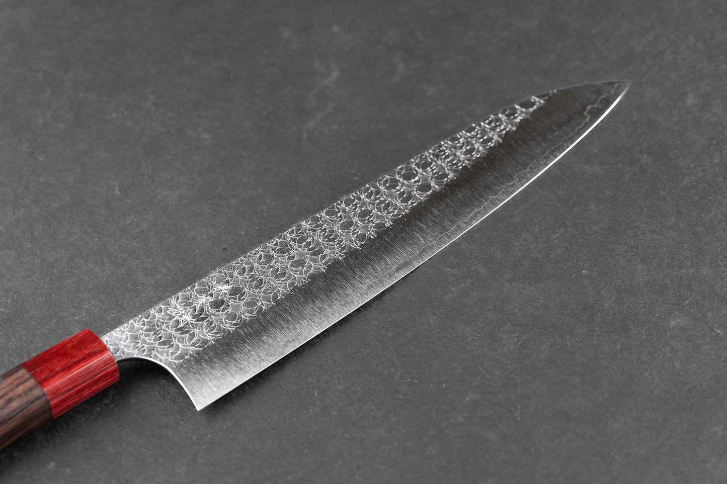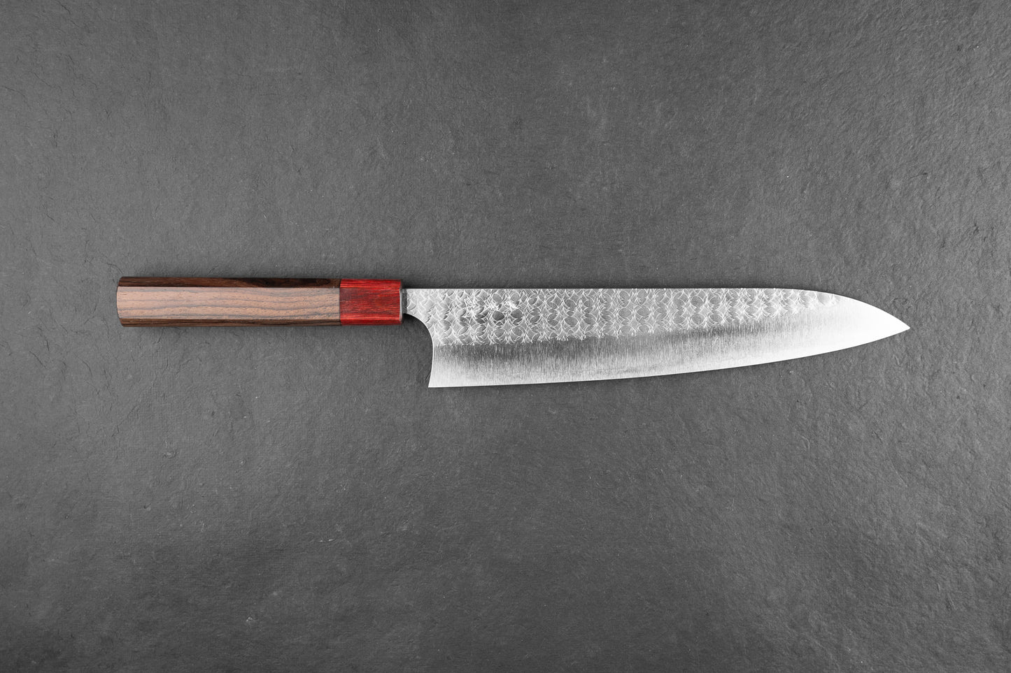 About the Shape - Inspired by the profile of a traditional European chef knife, Gyutos are a multi-purpose knife with a slight meat cutting bias. “Gyuto” translates to “cow sword.” If you want one knife to do it all, This is it. Starting at 180mm, Gyutos can reach the ridiculously long (and awesome) 370mm. For the at-home or professional cook, we recommend a Gyuto which measures between 210mm and 270mm long.