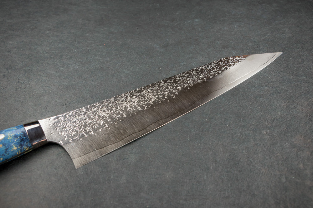 He never felt that he was a natural blacksmith until he sold his first knife and saw the joy it brought to the customer. Over the years, Kurosaki san has continually experimented with different steels, handles, finishes and shapes. He is best known for his one-of-a-kind flashy pieces, but also has a couple of amazing staple lines at Knifewear.