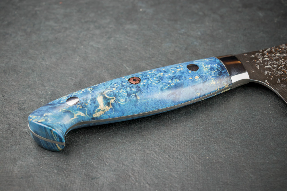 About the Shape - Inspired by the profile of a traditional European chef knife, Gyutos are a multi-purpose knife with a slight meat cutting bias. “Gyuto” translates to “cow sword.” If you want one knife to do it all, This is it. Starting at 180mm, Gyutos can reach the ridiculously long (and awesome) 370mm. For the at-home or professional cook, we recommend a Gyuto which measures between 210mm and 270mm long.